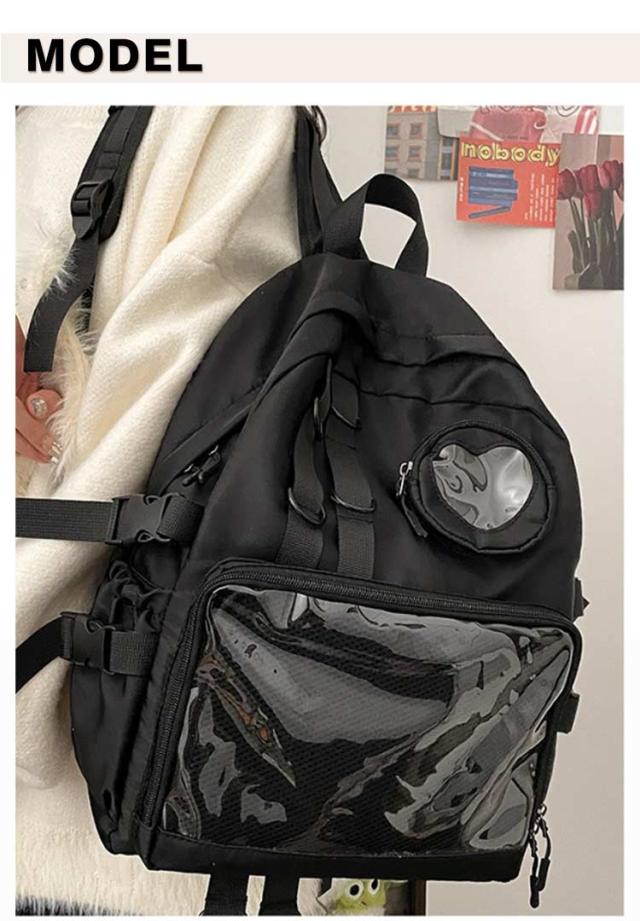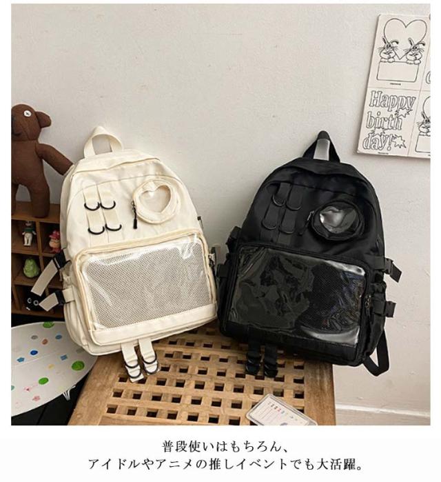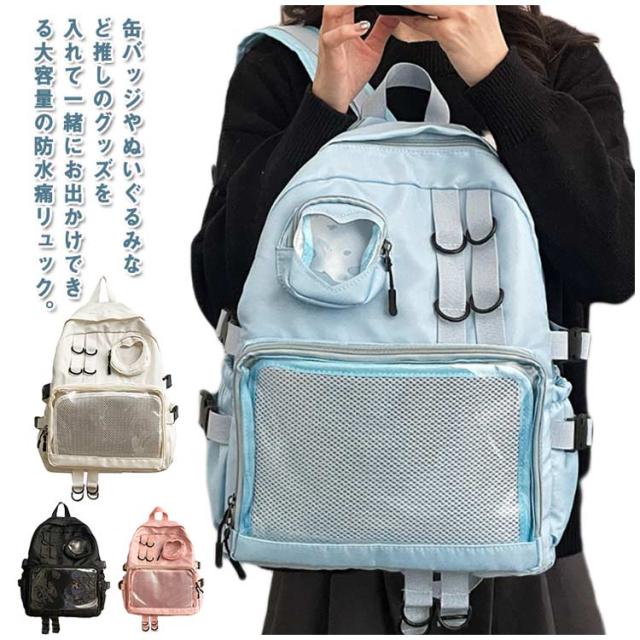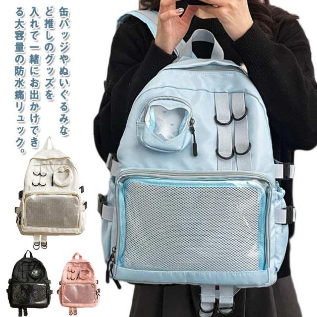 大容量 カバン バックパック ナイロンリュック 背面ポケット マザーズバッグ 多機能 ヲタバ リュック 撥水 軽量 痛バッグ A4 鞄 痛バ 多機能 ビニールバッグ 缶バッチ 痛バッグ 鞄 痛バッグ クリアバッグ 透明バッグ 通学 旅行