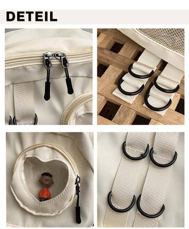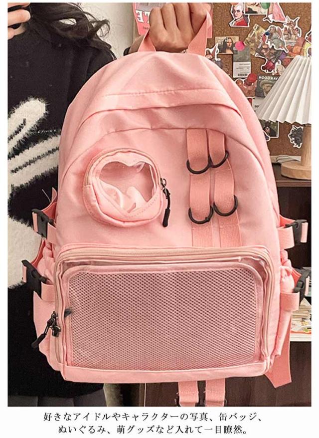 | 缶バッジやぬいぐるみなど推しのグッズを入れて一緒にお出かけできる大容量の防水痛リュック。 フロントに透明ポケットで見せたいアイテムを自由にアレンジできます。 好きなアイドルやキャラクターの写真、缶バッジ、ぬいぐるみ、萌グッズなど入れて一目瞭然。 大容量のA4サイズ、雑誌 、ipad、折り畳み傘や本など収納可能ので、通学や出かけにもおススメです。 普段使いはもちろん、アイドルやアニメの推しイベントでも大活躍。 | |