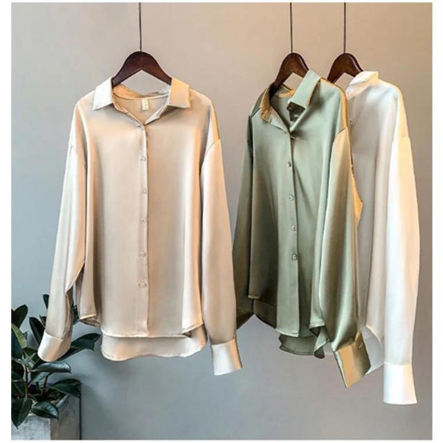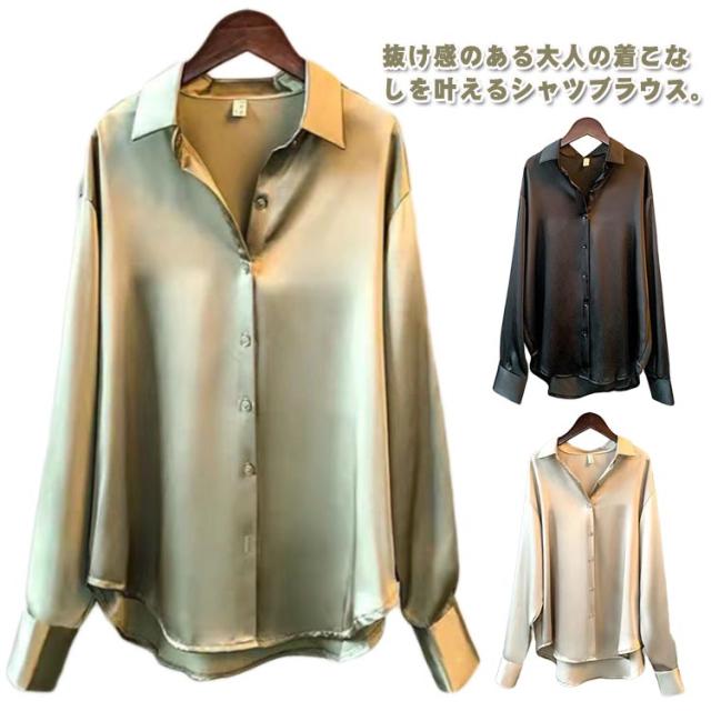 ブラウス ブラウス きれいめ 夏服 サテン風 OL 光沢感 秋 通勤 トップス 春服 レディース 春 オフィス 艶感 長袖 大きいサイズ 着痩せ フォーマル 夏 ビジネス ゆったり シャツブラウス お洒落 20代 30代 40代 50代 無地