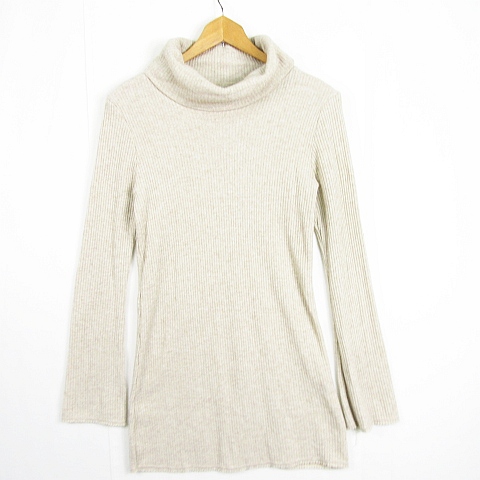 【中古】ゴア goa リブ ニット ワンピース ミニ丈 長袖 タートルネック ウール アンゴラ F ライトベージュ