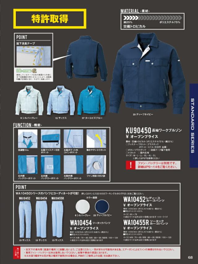【24V 2025年 GLOBALバッテリー&ファン付き】サンエス SUN-S 空調 風神服 KF90450 長袖ワークブルゾン帯電防止素材 WA10470シリーズパンツ対応 | 風神 単品 静電 帯電 防止 カジュアル おしゃれ かっこいい 和 KU90450