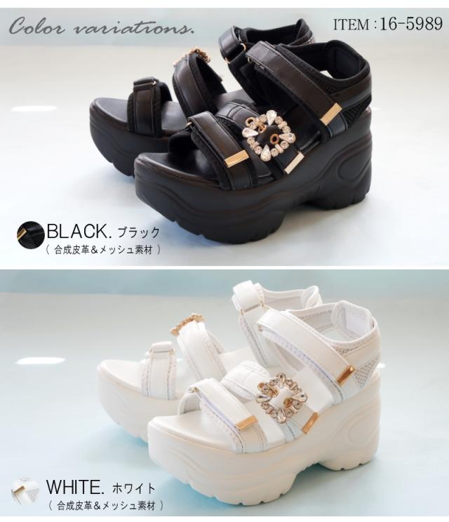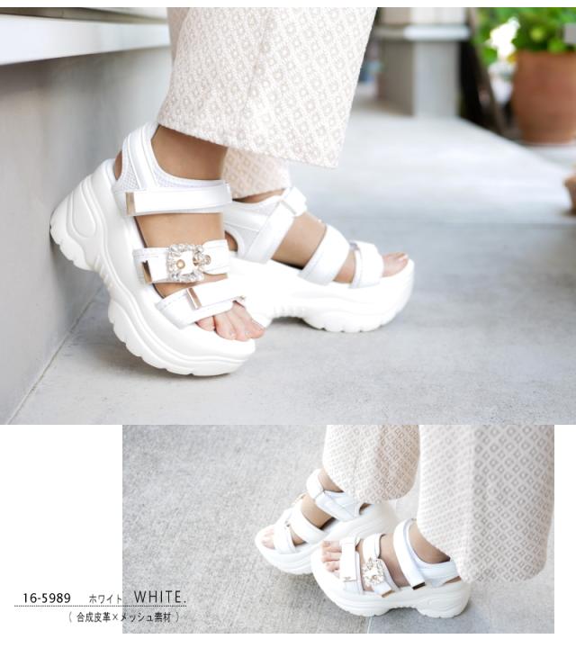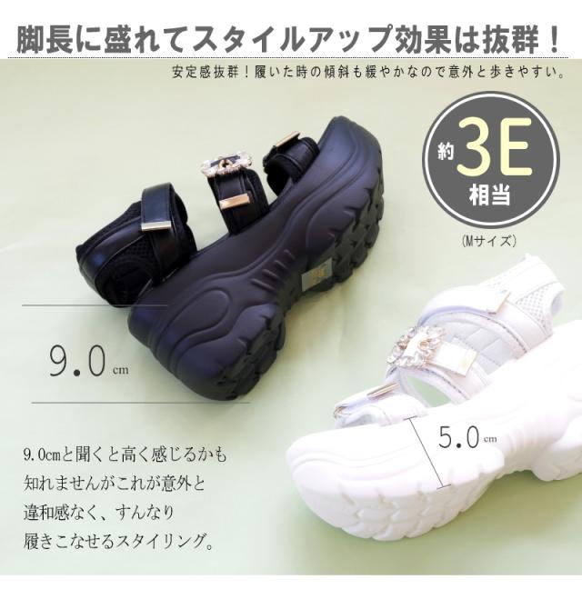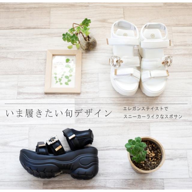 スポーツサンダル レディース バックベルト 厚底 ボリューム プラットフォーム ベルクロ ベルト ビジュー バックル 軽量 メッシュ 脚長 美脚 スタイルアップ 夏 韓国 原宿 お洒落 3e