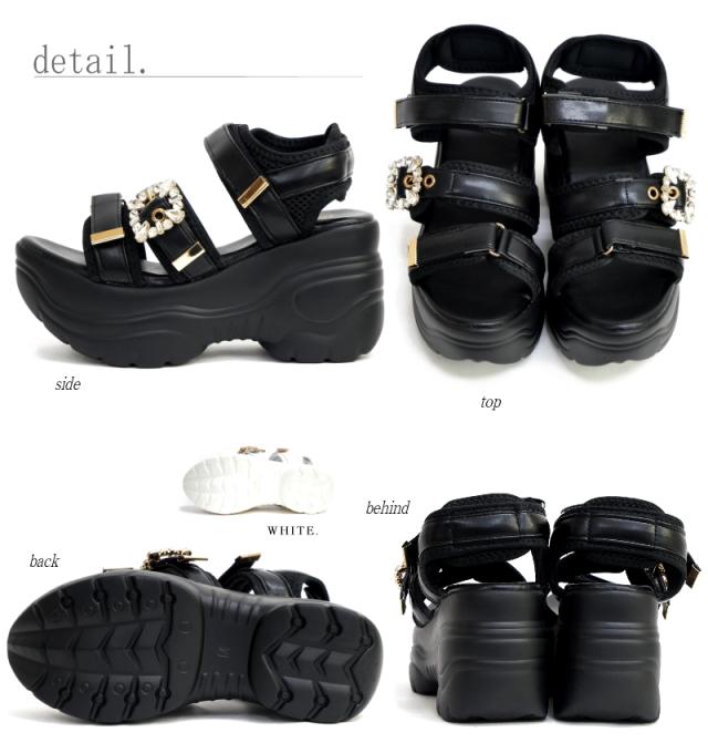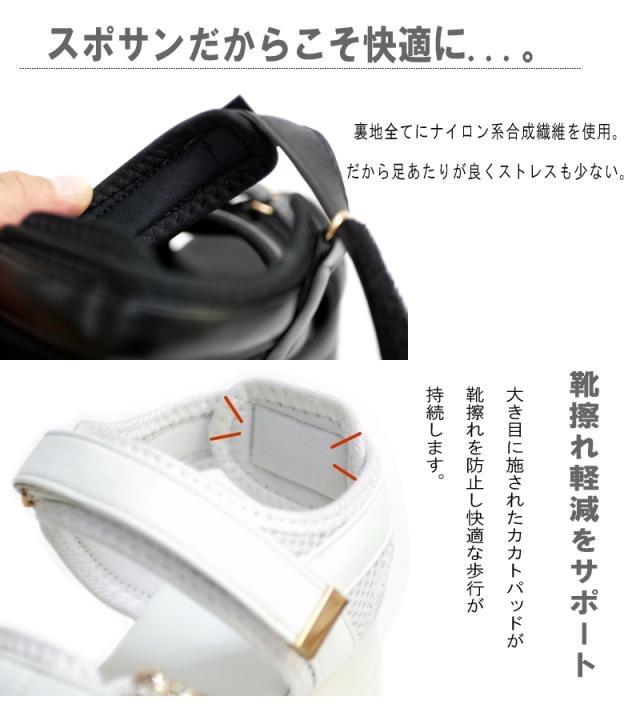 送料無料 スポサン ストラップサンダル 厚底スポサン 厚底サンダル バックベルトサンダル サマーサンダル 清涼感 ゴスロリ ボリュームソール 面ファスナー スニーカーライク