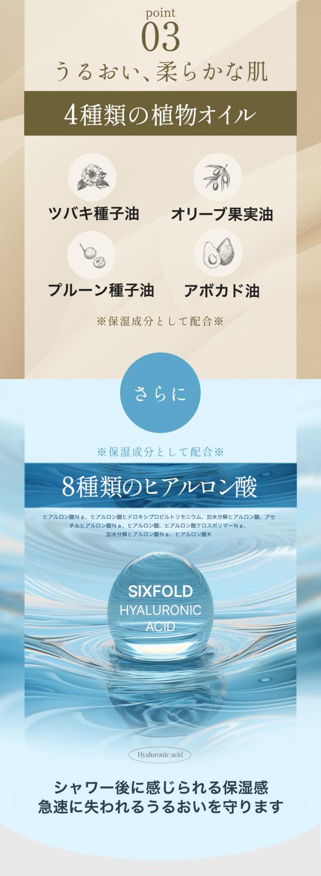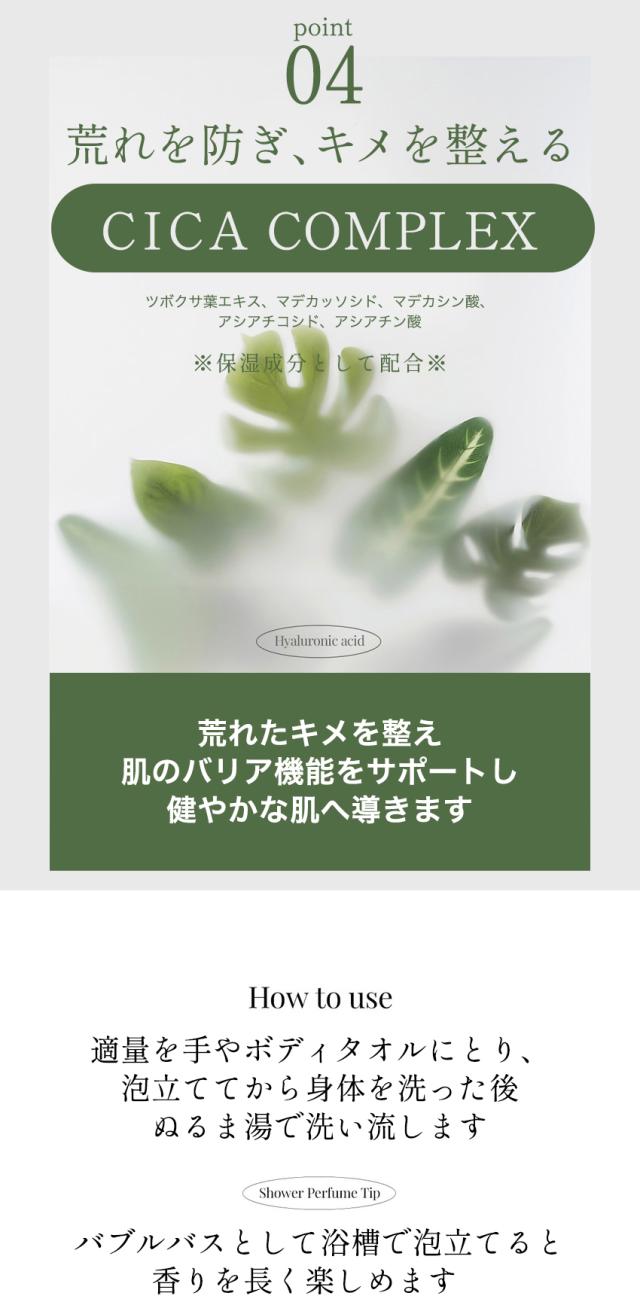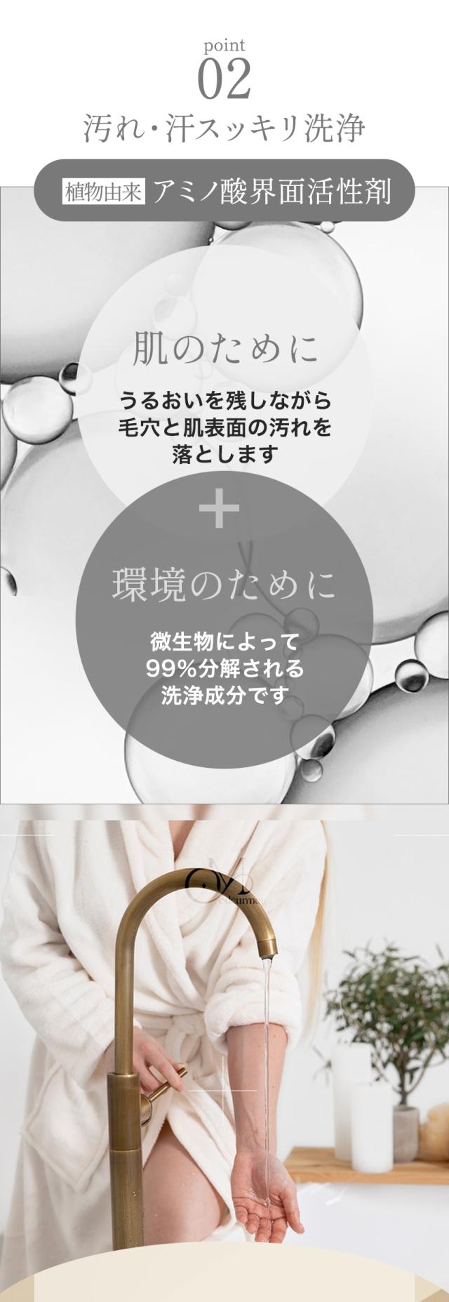 バスタイム後も、ほのかな香りが香水のように続くボディソープ。