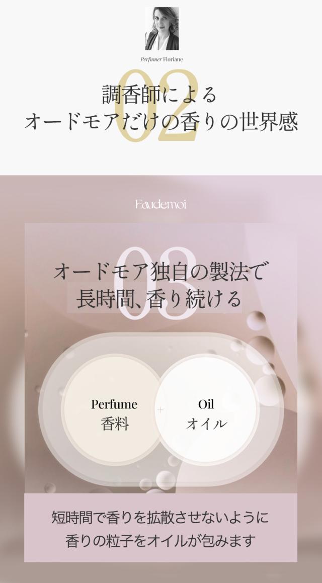 オードモア独自のオイル製法によって、長時間、上質な香りがふんわりと香り続けます。