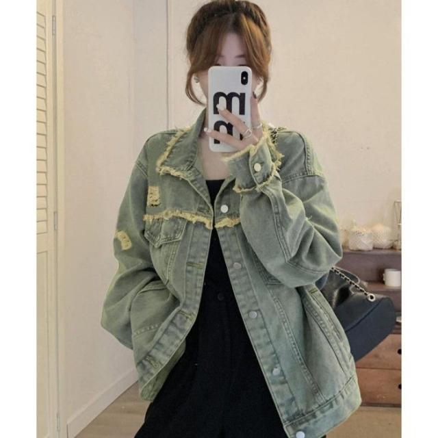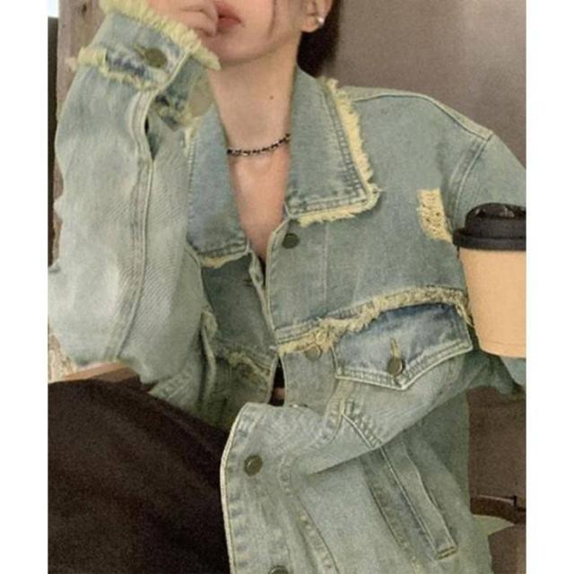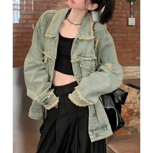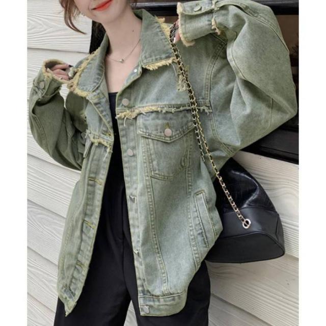 ヴィンテージ感デニムアウター レディース レトロGジャン 韓国風ライトアウター デニム羽織長袖 ゆったりジージャン春秋服