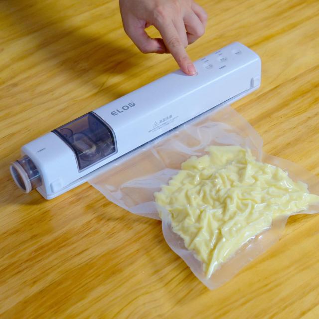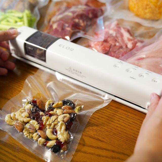 真空パック機を使いやすく。いつもの生活に取り入れよう。こちらは真空パックが50枚追加されたセットです。使い方は「挟んで、ボタンを押す」だけ。袋が真空になったらシーリングまでオートで完了。人気のポータブル真空パック機Suseal。Suseal Homeは「真空にする機能」に特化し、お家の中で使いやすいようにデザインしました。横幅25cm(開口23cm程)の真空パック袋もシーリングできるので、魚などの大きい食品も簡単に真空にしてくれます。Suseal Homeはこんな人におすすめ!自宅で真空パック機を週に何回も使う、料理の下味準備などを頻繁に行う、肉の冷凍保存をする、バルブの袋やコンテナを使う。簡単に使えるからいつもの生活に新しい便利が取り入れやすい!オート吸引モードの「MOIST機能」搭載で、水分があっても真空パックが可能。MOISTケースは取り外して簡単に水洗いできます。さらにノズルを回すと、「外部吸引モード」に切り替えて使う事ができます。このモードではバルブ式の袋やコンテナにも対応できるので、1台で様々な使い方ができます。Suseal Homeは充電式であることもポイントです。
