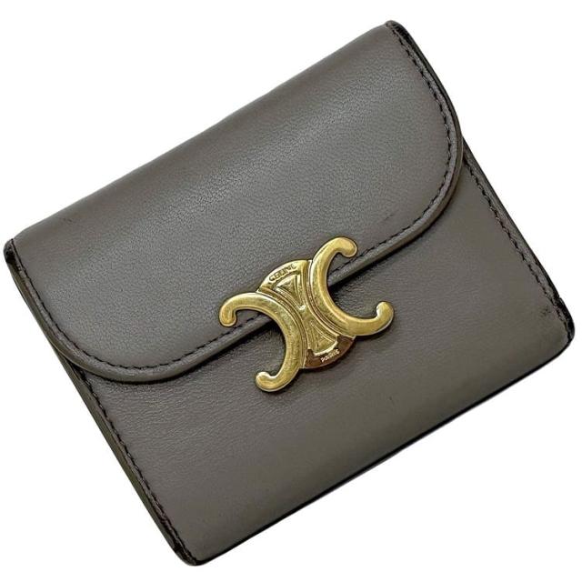 セリーヌ 三つ折り 財布 ec-23083 ベージュ トリオンフ ロゴ レザー 中古 S-AT-3261/S-FG-3281 CELINE ホック 折り財布 コンパクト 本革 シンプル ロゴ金具 ゴールド金具 レディース 小銭入れ有 ミニ財布 ブランド 本物 鑑定済み