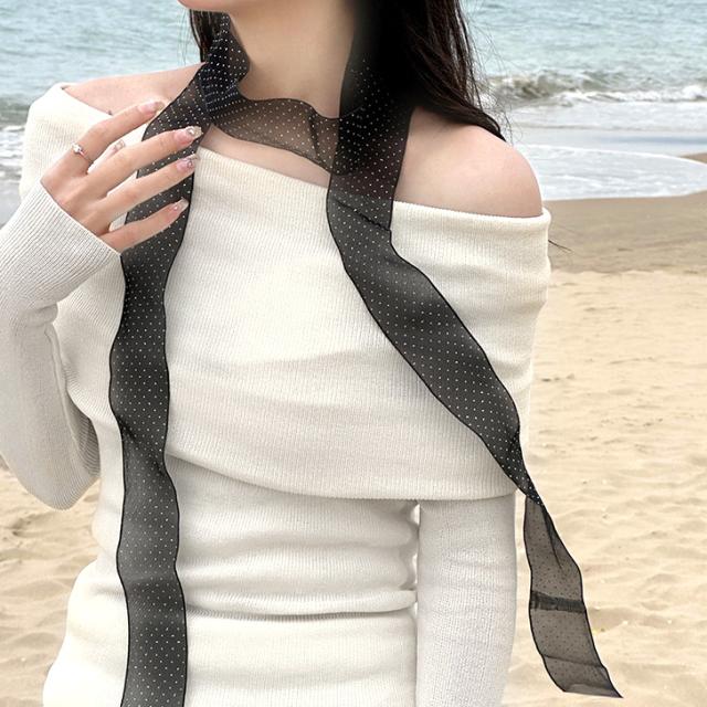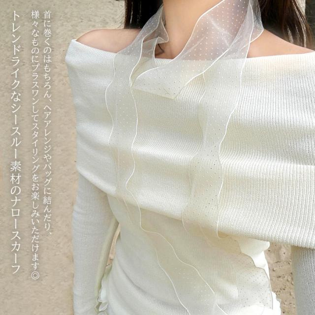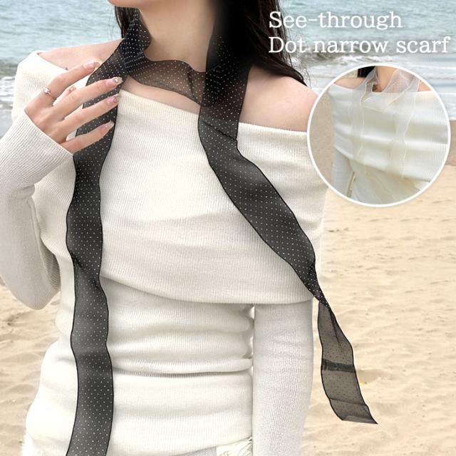 新作 選べる2カラーシースルードットナロースカーフ レディース スカーフ ナロースカーフ ロングスカーフ チョーカー ストール アクセサリー リボン おしゃれ かわいい 大人 韓国 ドット シアー シースルー 透け感