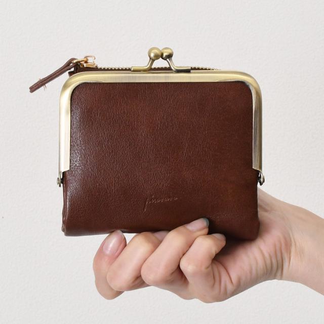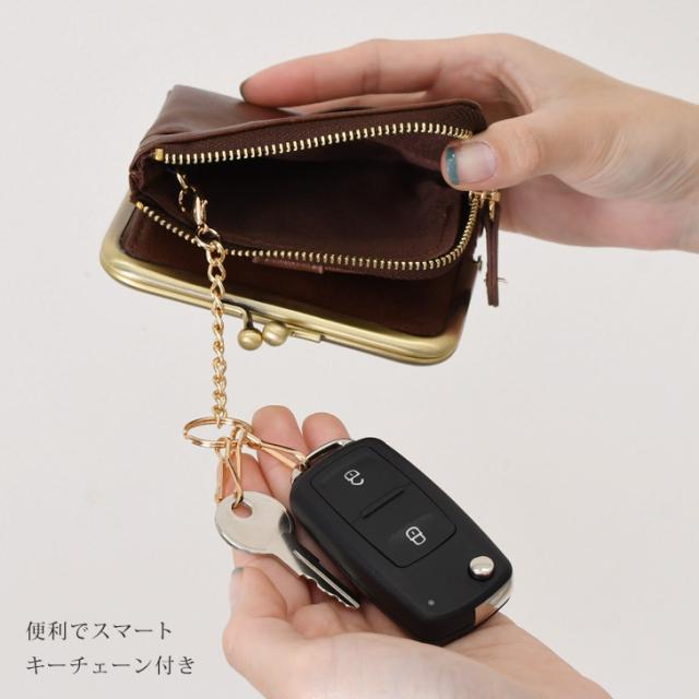 がま口とファスナー付きで、小銭や鍵、小物の収納にも便利