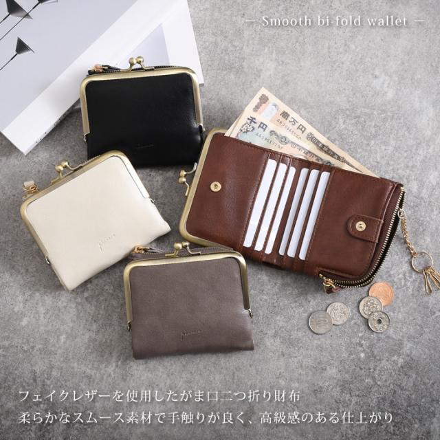 新作 スムース がま口 二つ折り財布 レディース メンズ 大容量 ファスナー 財布 二つ折り コンパクト ウォレット ミニウォレット ミニ財布 コインケース カードケース 札入れ キーリング フェイクレザー シンプル