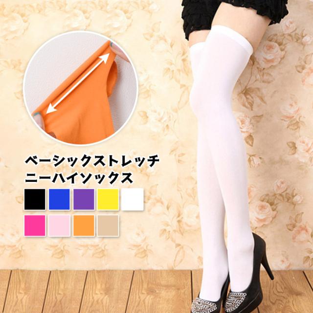 新作 選べる9カラーベーシックストレッチニーハイソックス レディース 靴下 ソックス ニーハイ オーバーニーソックス くつ下 ロング丈 膝上 伸縮性 レッグウェア おしゃれ シンプル デイリー ゴルフ コスプレ 衣装
