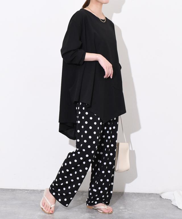 ゆとりのあるワイドなシルエットで楽に着られ、