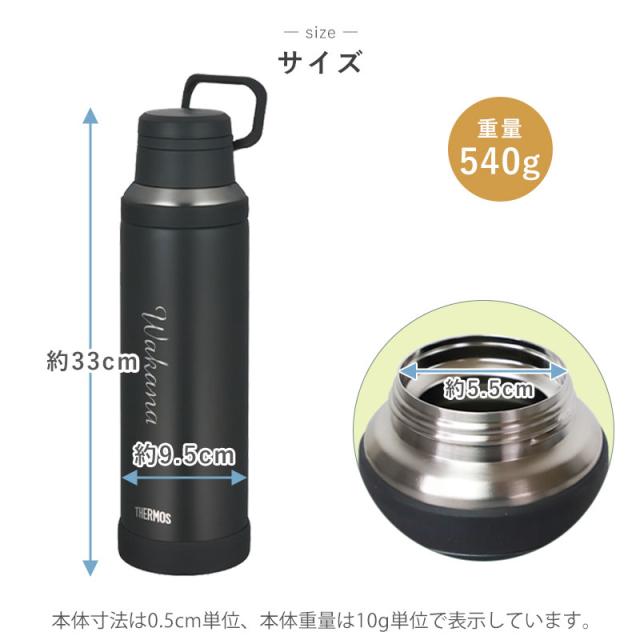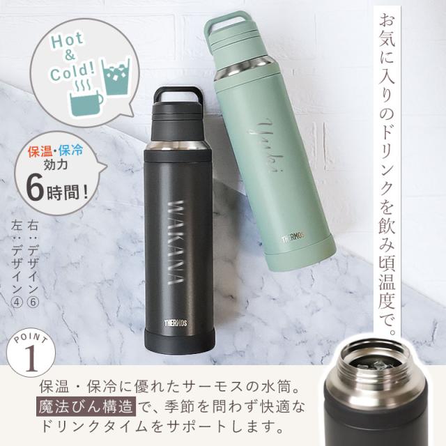 お気に入りのドリンクを飲み頃温度で、いつでもどこでも楽しめる保温、保冷に優れたサーモスの水筒です。 名前を入れてオリジナルギフトを贈りませんか♪ 世界で一つだけのオリジナルギフトになります! 彫刻はプリントと違い、洗っても消える心配が有りません。 一生の記念になりますね。 水筒は魔法びん構造で、季節を問わず快適なドリンクタイムをサポートします。 キャリーループ付きで持ち運びに便利な仕様となっています。 汗をかいてもすべりにくくて握りやすいシリコーンゴム製のリング付き。 また衝撃に強いソコカバーも付いているので、部活やアウトドアにもおススメです。 全パーツ食洗機対応でお手入れもラクラク、すみずみまで洗えて清潔です。 開閉はスクリュータイプでしっかり閉まる構造です。 飲み口は唇にフィットする形状に。 フタも大きく開く仕様になり、さらに飲みやすい新構造に進化しました。 デザインは6種類からお選びいただけます。 水筒のカラーは2色からお選びいただけます。 父の日や母の日、入学祝いや就職祝いなどギフトにおすすめです。 ラッピングも無料となっておりますので、ご購入手続きの「ラッピング・のし」より包装紙をご選択ください。 「THERMOS」、「サーモス」はサーモス株式会社の登録商標、または商標です。 |