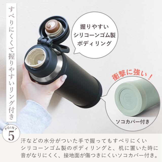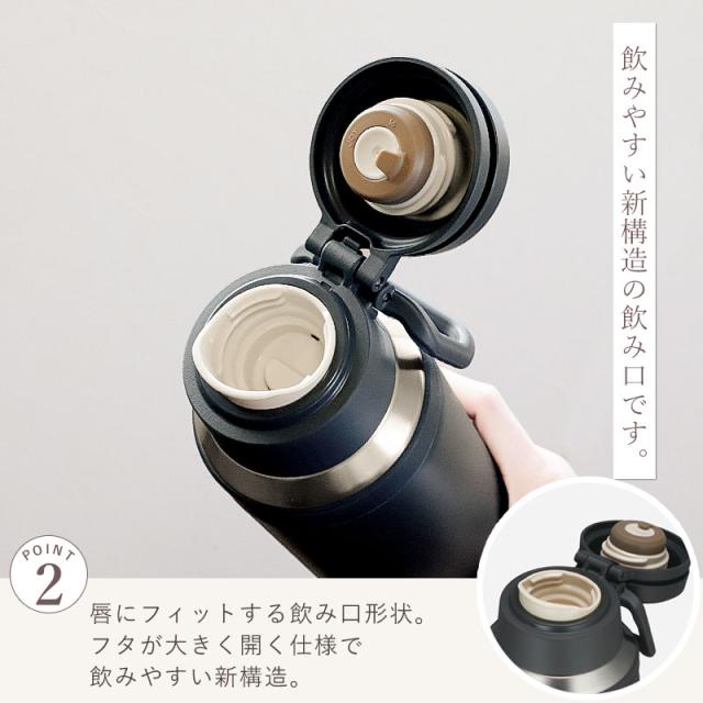 水筒は魔法びん構造で、季節を問わず快適なドリンクタイムをサポートします。