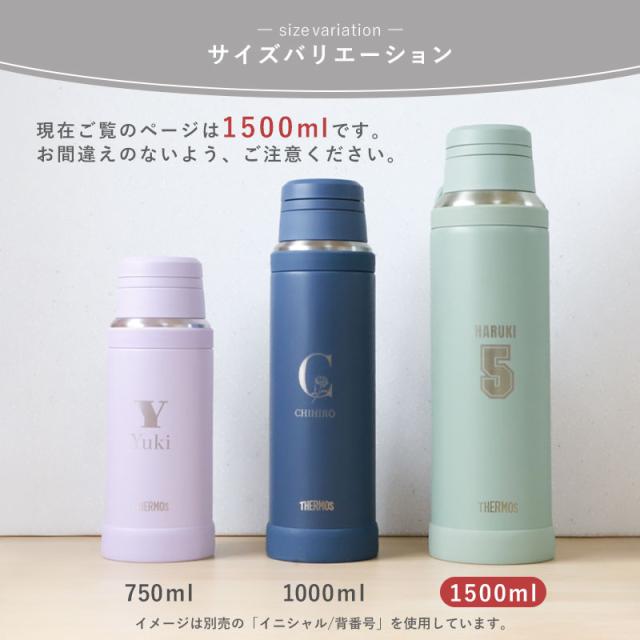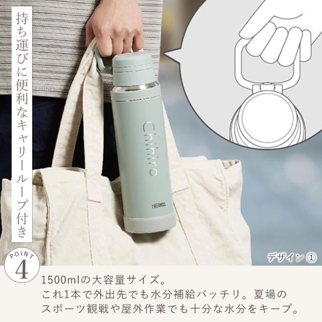 サーモス 水筒 名入れ無料 1500ml 1.5リットル THERMOS 名前入り ネーム 横書き 食洗機対応 スクリュータイプ キャリーループ 付き 持ち手 真空断熱ケータイマグ 魔法瓶構造 マグ スポーツドリンク 彫刻 オリジナル 水分補給 大容量 JOY-1500
