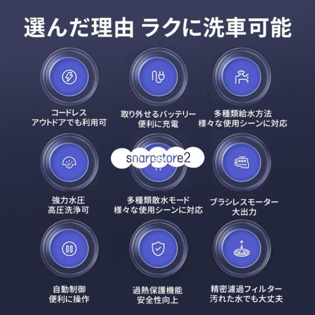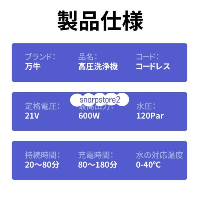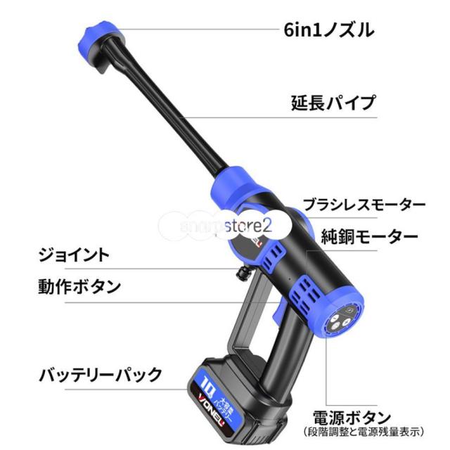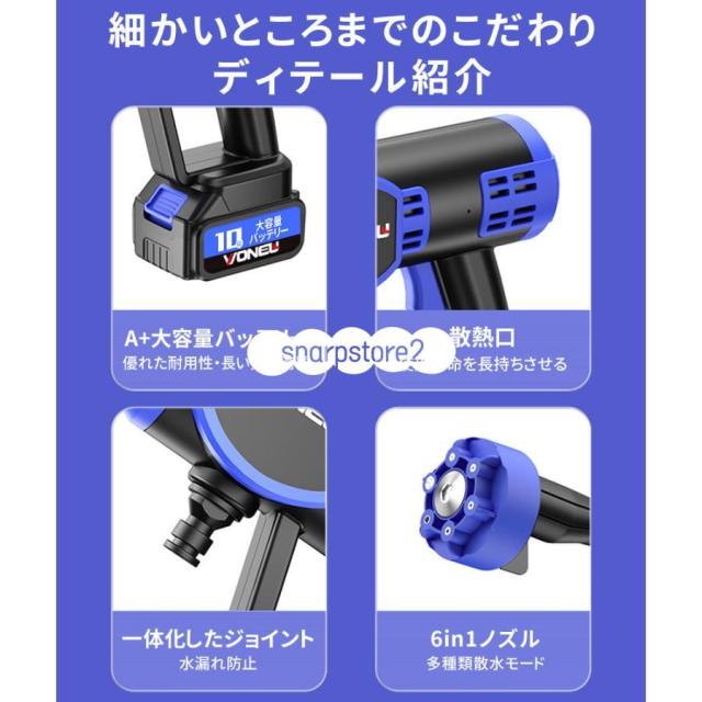 高圧洗浄機 コードレス 充電式 12MPa 600W 強力な噴射 8-10M 20000mAh 長時間持続 60-80分 コードレス高圧洗浄機 6合1多機能ノズル 自吸式 強力噴射 軽量 家庭用