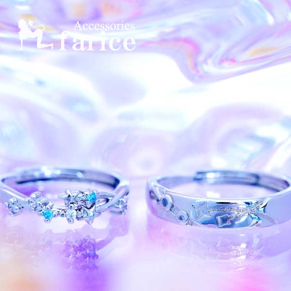 星 流れ星 スター シューティングスター 透明 水色 キュービックジルコニア ペア リング 指輪 【立体orシンプル】