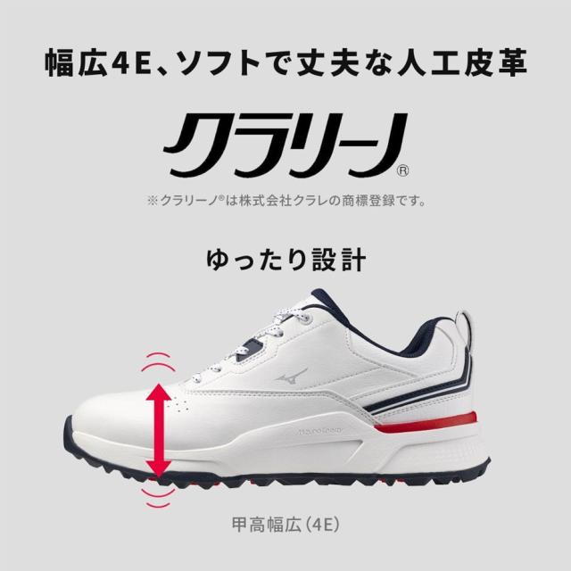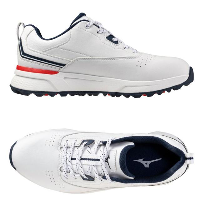 【即納可能】ミズノ ハザードエナジー ゴルフ シューズ メンズ 51GQ2502 01 オフホワイト×ネイビー×レッド 4E相当 スパイクレス 紐 幅広 防水 2025年モデル MIZUNO