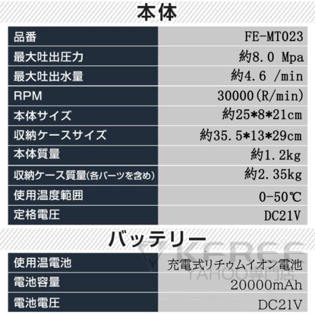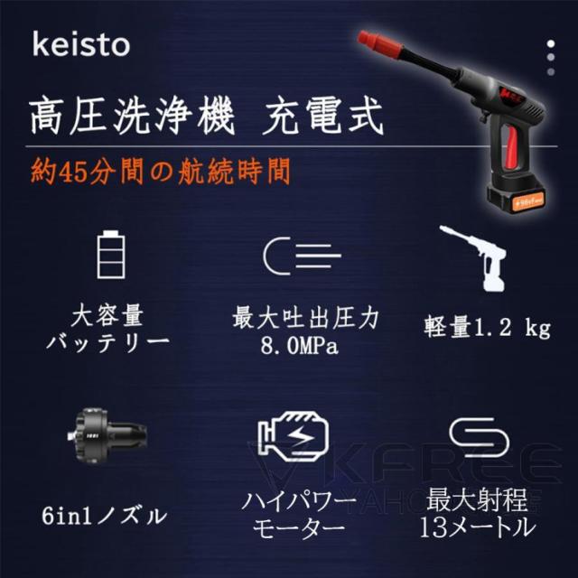 高圧洗浄機 充電式 コードレス 6in1 軽量 ポータブル 吐出圧力8MPa マキタバッテリー対応 強力 自吸式 家庭用 洗車タオル 小型 電動工具 掃除 収納ボックス付き