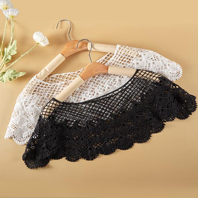 新作 ケープ 付け襟 つけ襟 レディース レース ビッグカラー ショール レイヤード 重ね着 ラウンドネック 黒 白 おしゃれ 透け感 春夏 秋冬