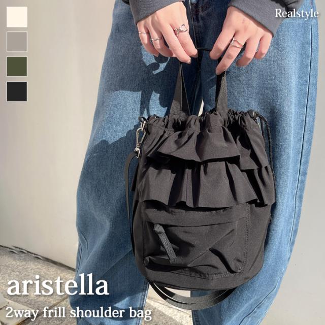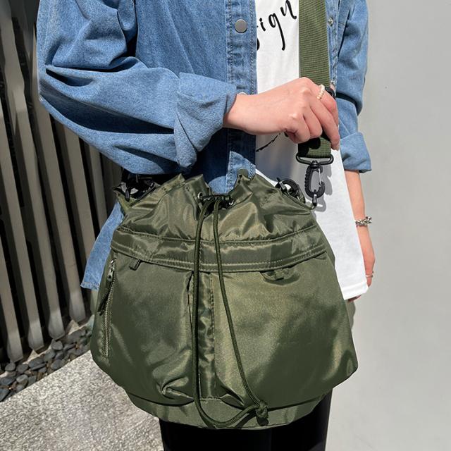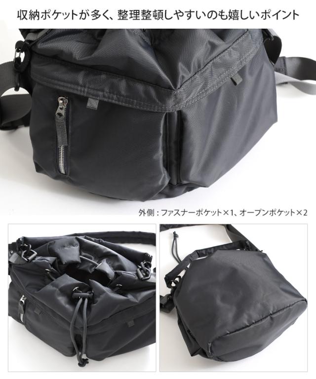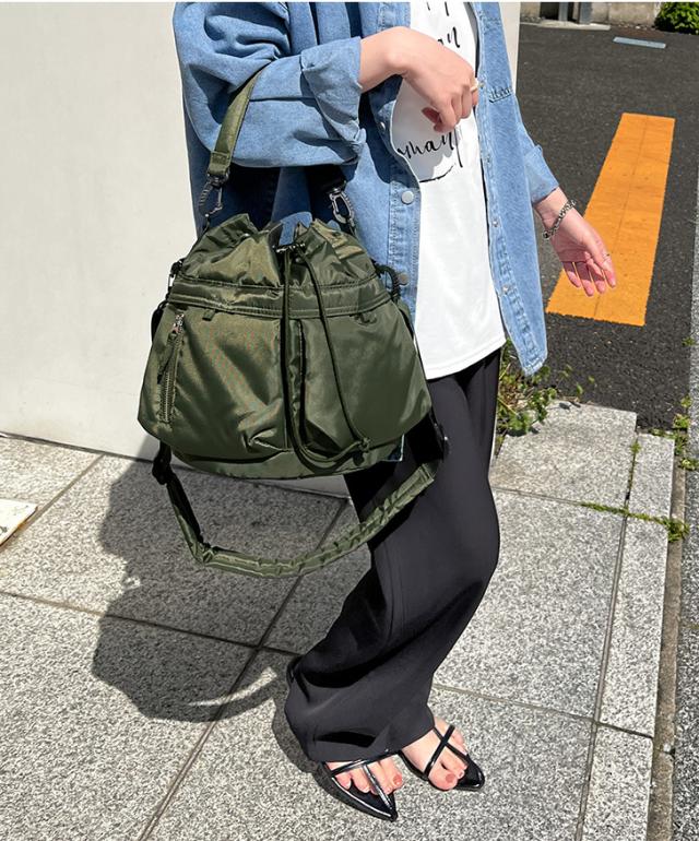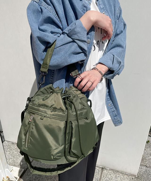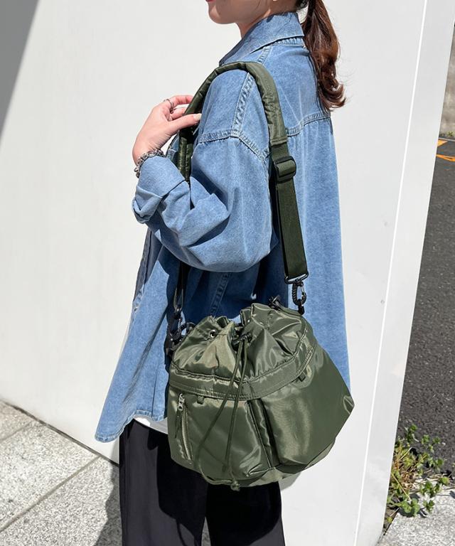 大きなダブルポケットが目を引くドロストショルダーバッグ