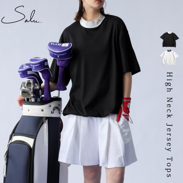 zsl-00001 ジャージー ハイネックトップス トップス ユニセックス ゴルフ ゴルフウェア カジュアル 異素材 ドローコード 体型カバー 通気性 ゆったり シワになりにい