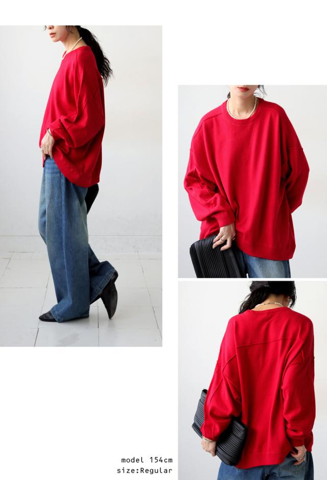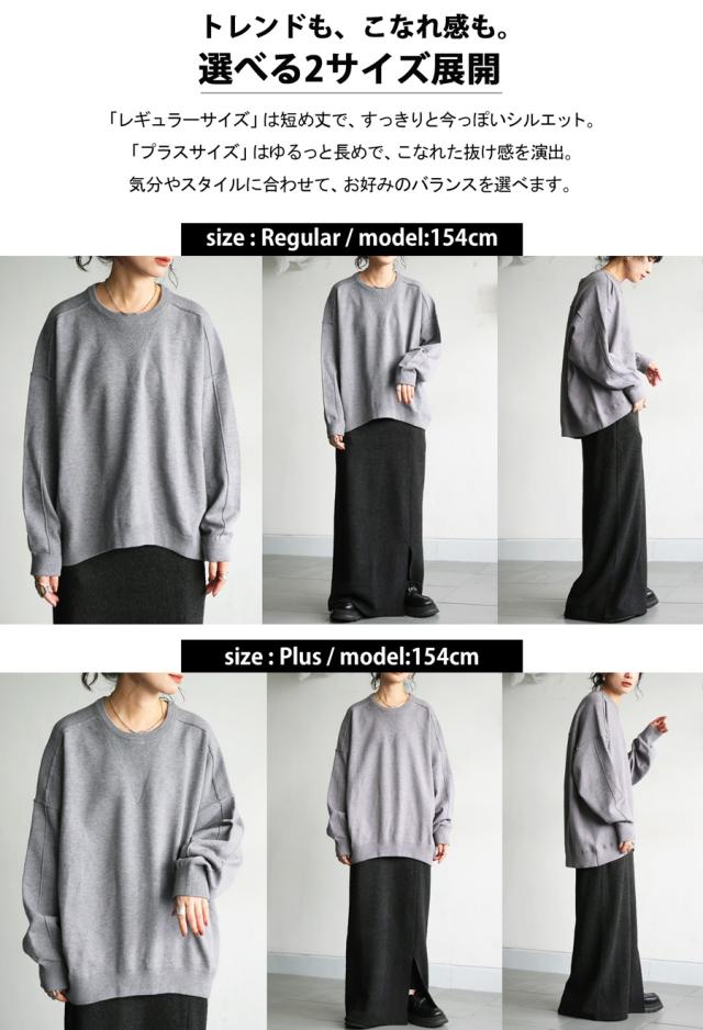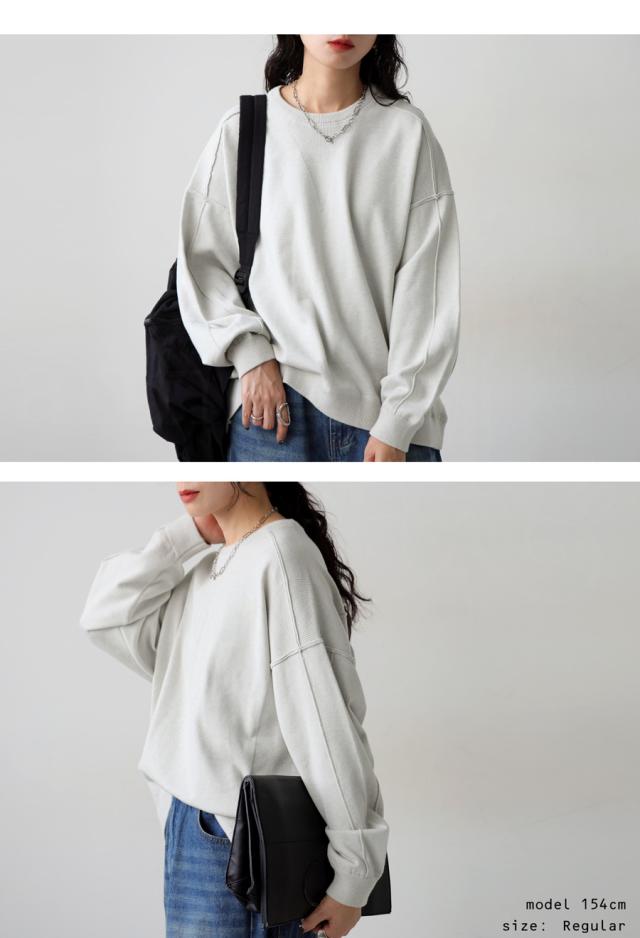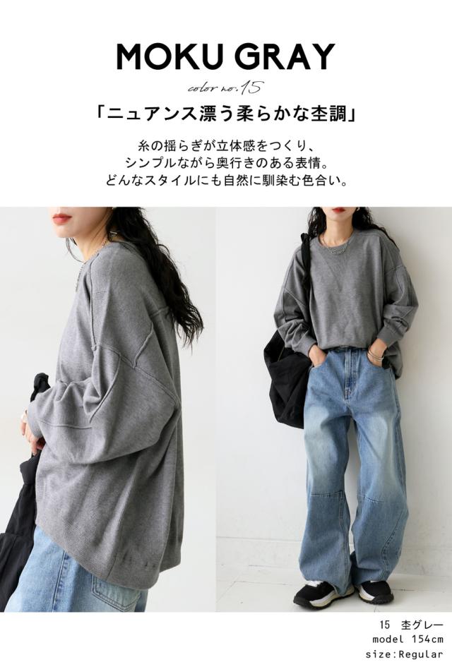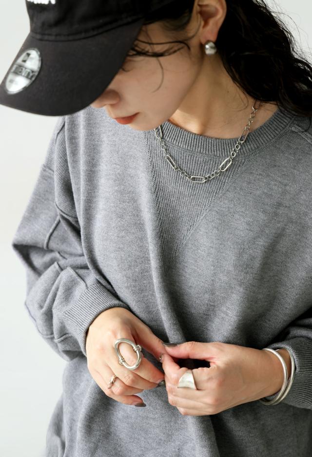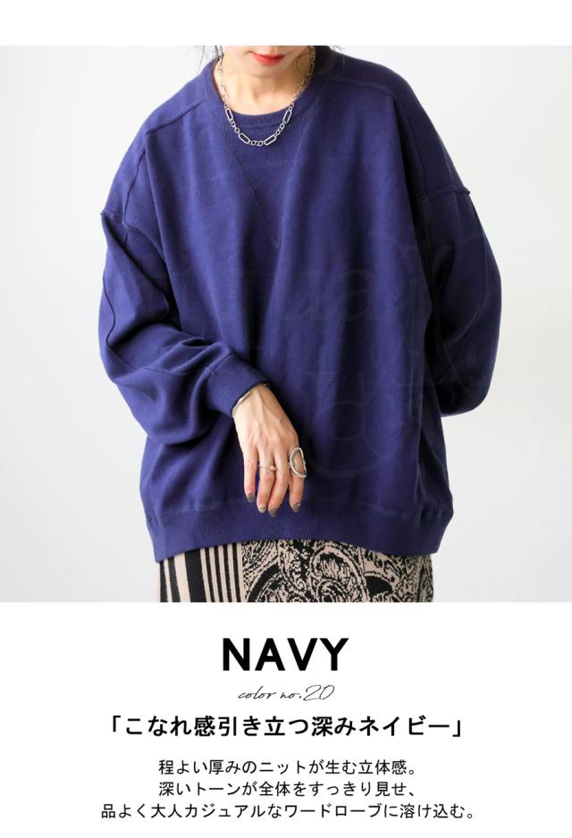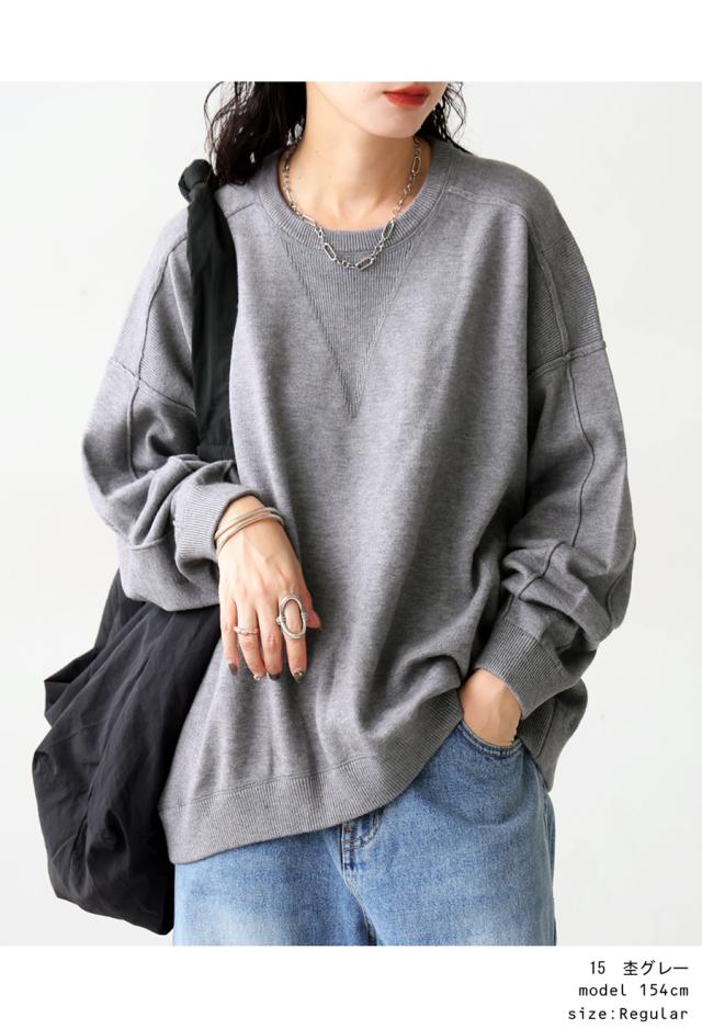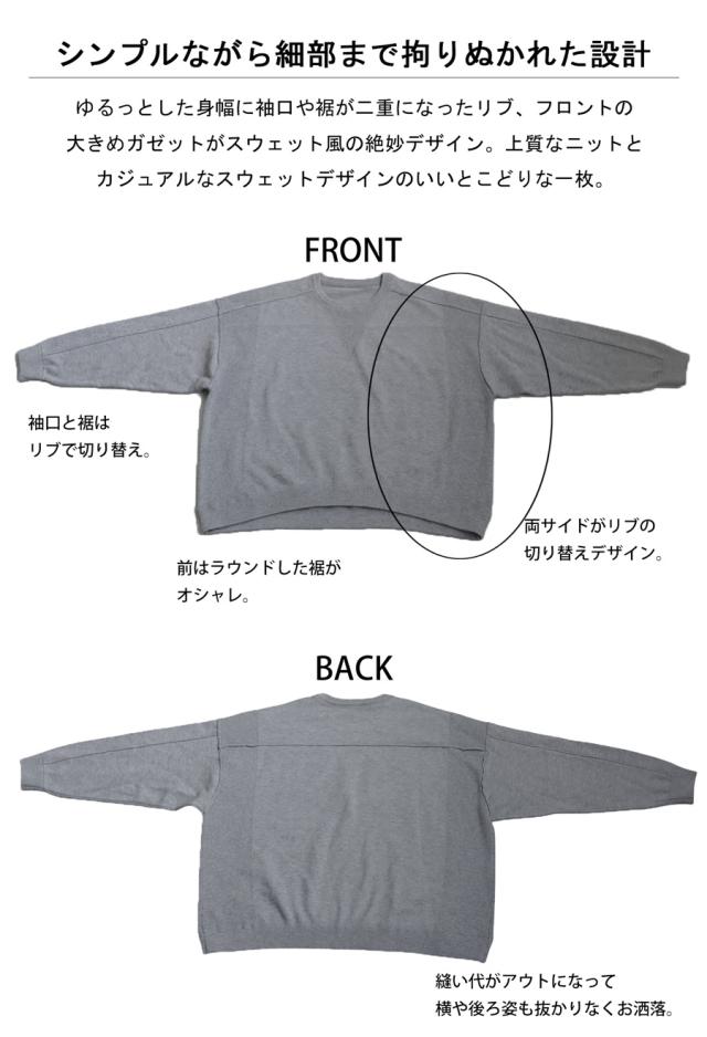 スウェットのような表情をもつ、ラフで女性らしい印象のスウェットライクニットトップス。