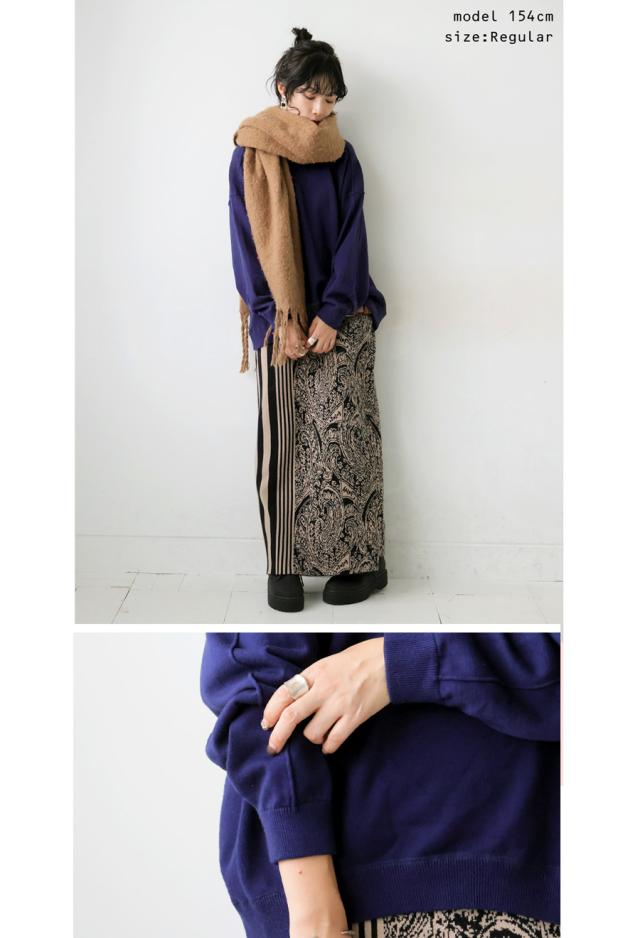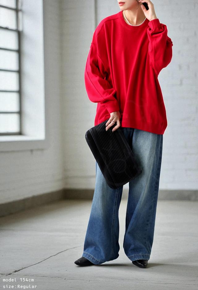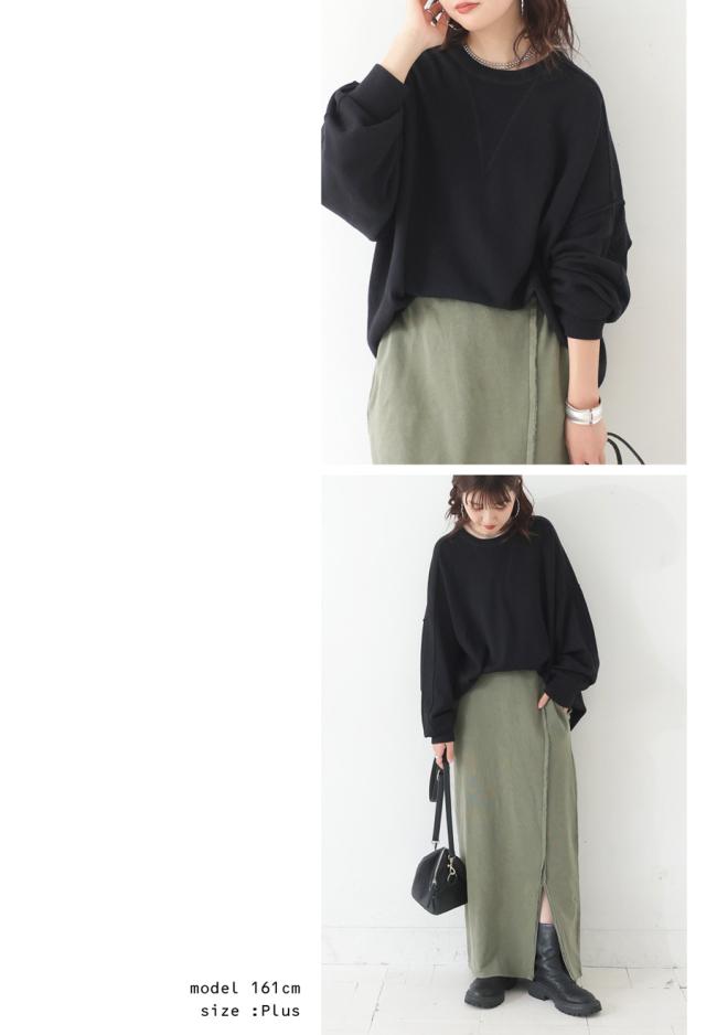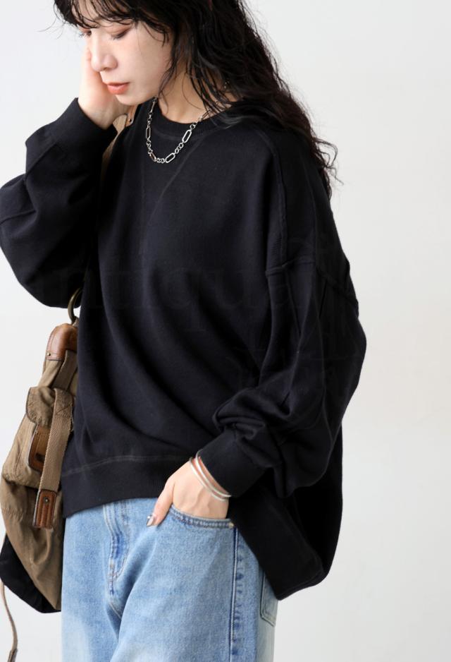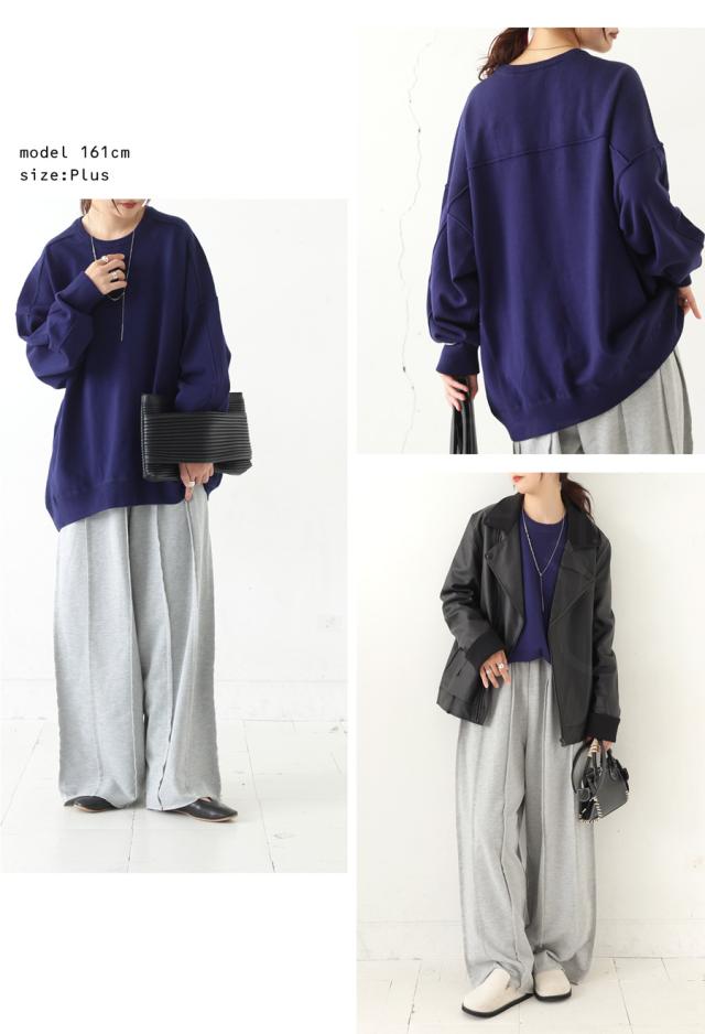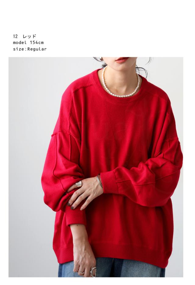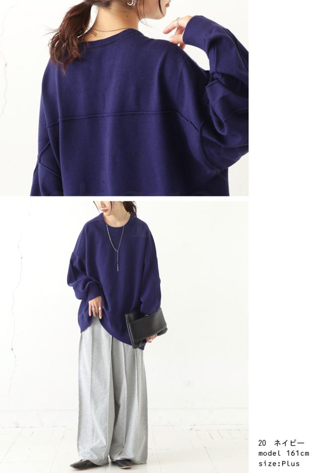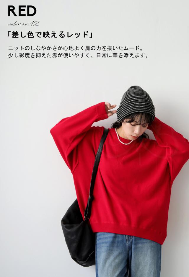 スウェットのような表情をもつ、ラフで女性らしい印象のスウェットライクニットトップス。