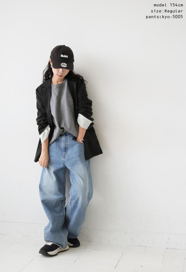 身幅はゆったりとしており、長めの丈感で体型を自然にカバー。