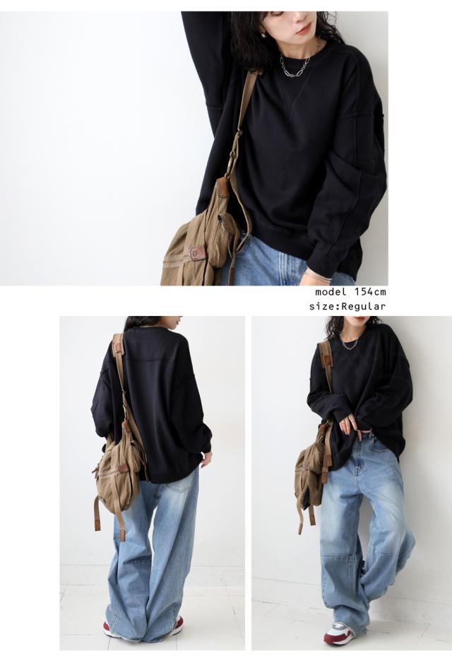 za-00255 ニット セーター クルーネック リブ切替 カジュアル ガジェットデザイン ゆったり 大きめサイズ 無地 ユニセックス シンプル ナチュラル スウェット 着回し デイリー