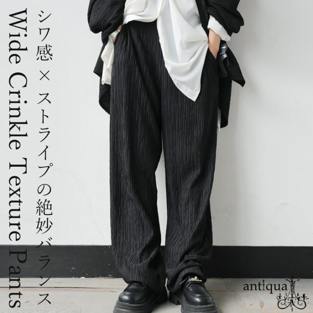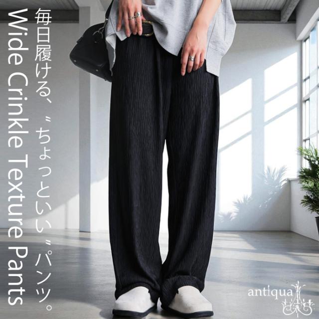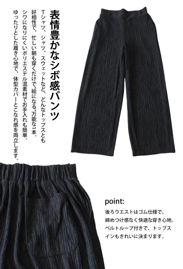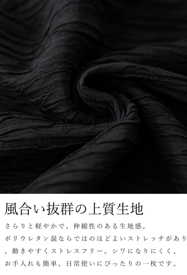 引き締まった印象で、シワ感素材の立体的な陰影がさりげないアクセントになります。