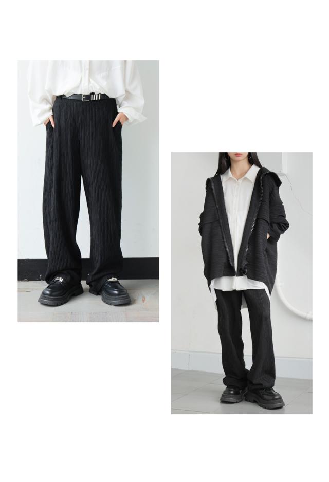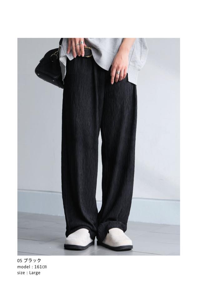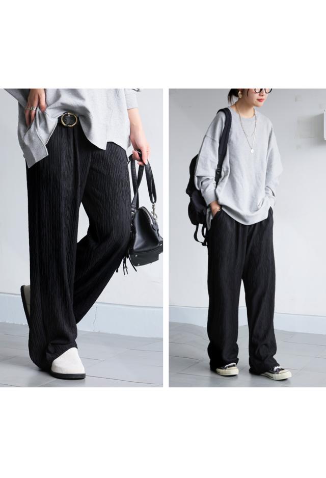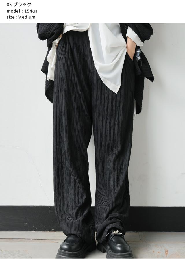 ze-01130 ストレートパンツ ワイドストレート シワ感 立体素材 ストレッチ ウエストゴム ゆったり ポケット付き ベルトループ付き シワになりにくい セットアップ ユニセックス
