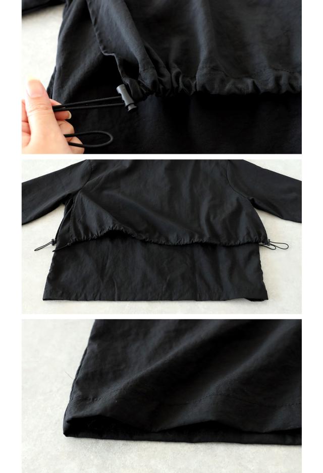 ドロスト仕様により、丈感や形状を自在に調整できる2WAYデザイン。