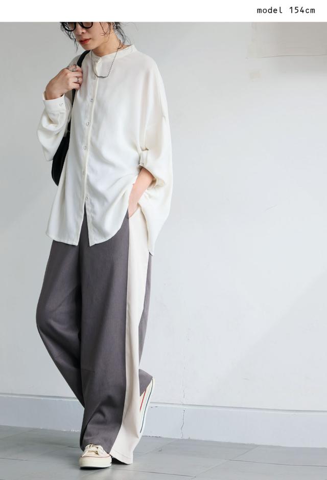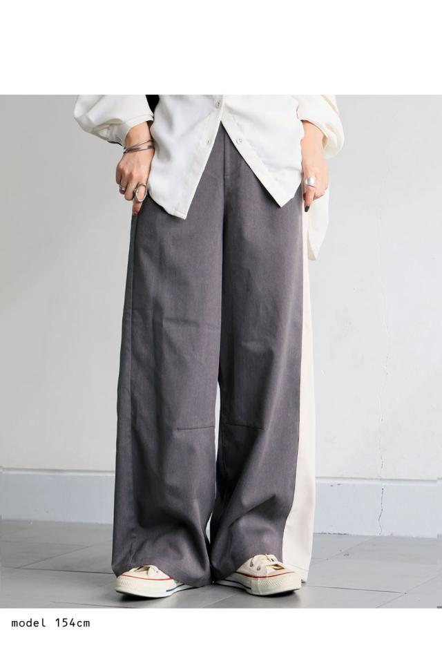 zk-00219 ロングパンツ 長ズボン 配色パンツ ワイドシルエット ウエストゴム きれいめ ゆったり ベルトループ付き ポケット付き 後ろゴム シンプル セットアップ ユニセックス
