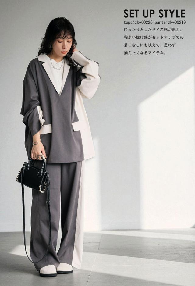 デイリーにもきれいめコーデにも使えるシンプルな長ズボンとして、セットアップ対応のジャケット(品番:ZK-00220/※別売り)と合わせれば統一感ある着こなしに。