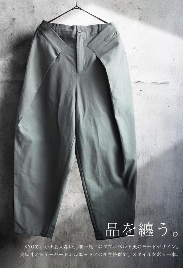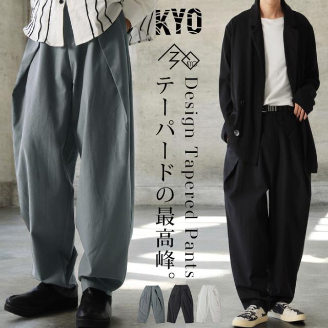 kyo-4013z テーパードシルエット 美脚 シルエット 無地 ユニセックス カジュアル モード ゆったり 体型カバー ロングパンツ 長ズボン 落ち感 ポケット付き ベルトループ すっきり