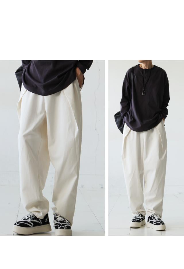 計算されたテーパードシルエットが、足元へ向かうラインをすっきりと整え、自然にスタイルアップを演出する一本。