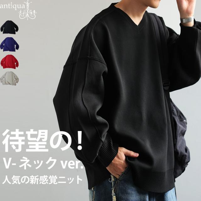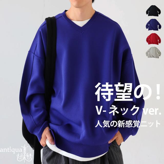 za-00259z トップス セーター 長袖 無地 Vネック リブ シンプル きれいめ カジュアル 上品 伸縮性 ストレッチ ゆったり 体型カバー 細見え 大きめ ユニセックス ハリ感 もちもち