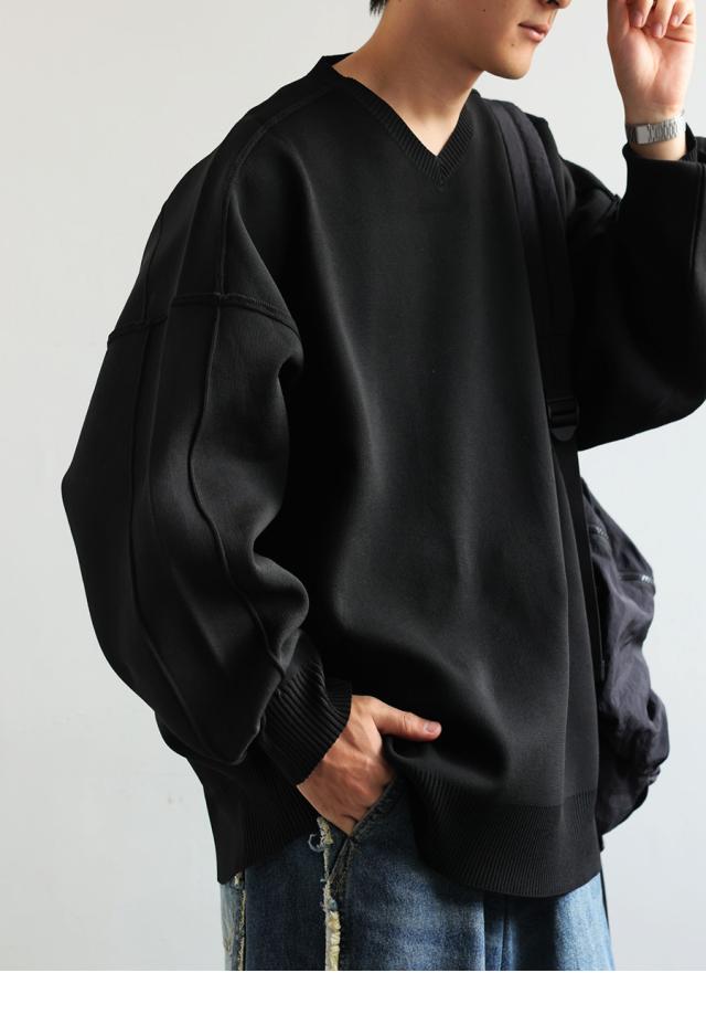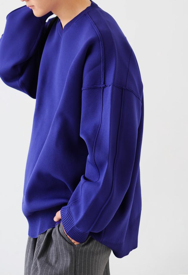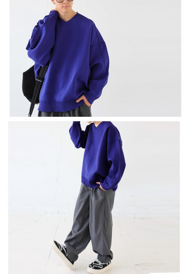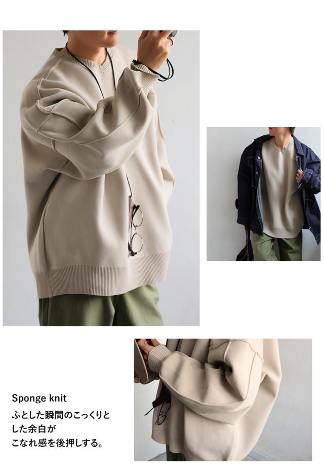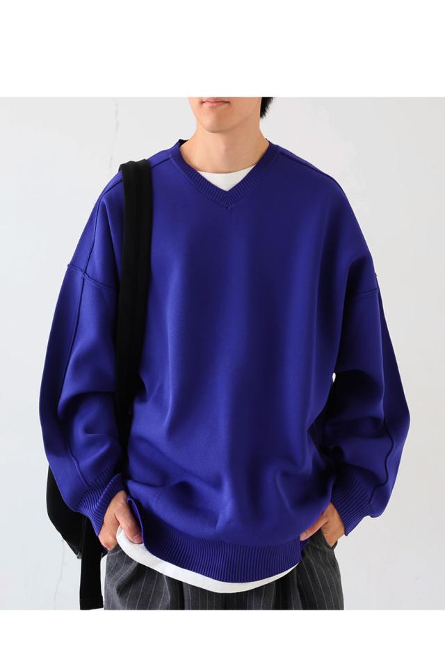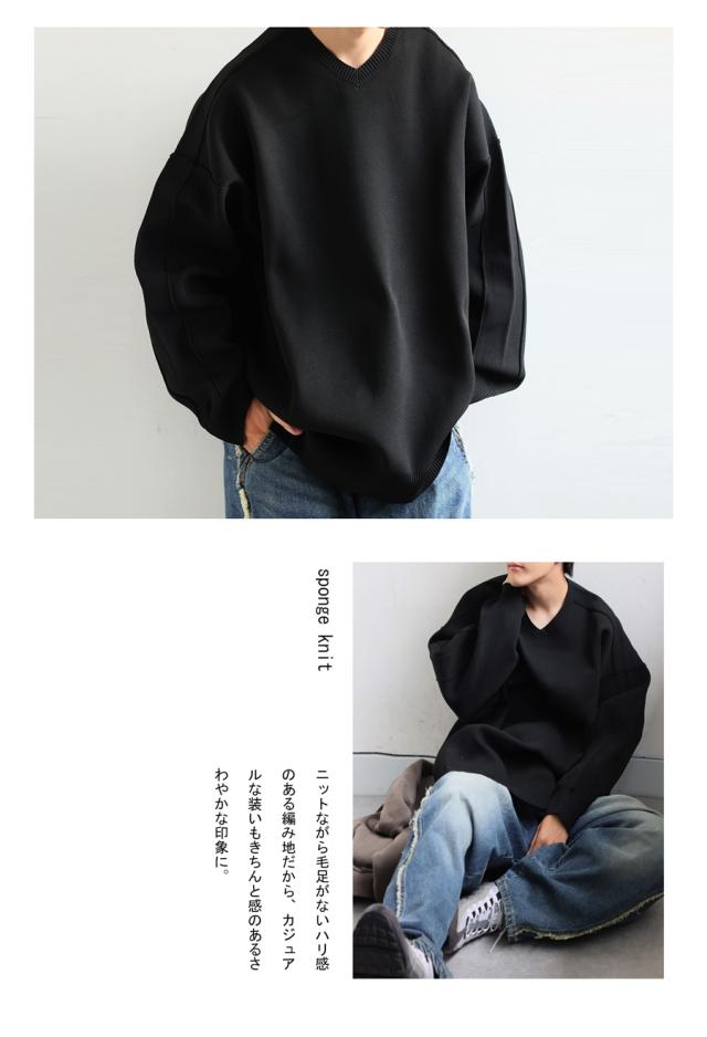 ほどよくハリがあり、もちっとした質感がクセになるスポンジニット素材を使用したVネックプルオーバーです。