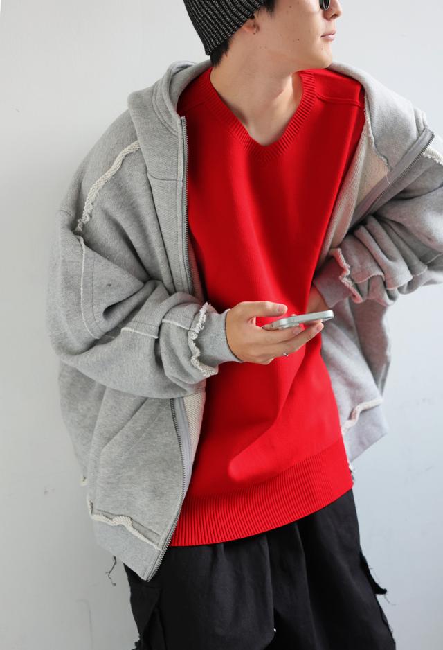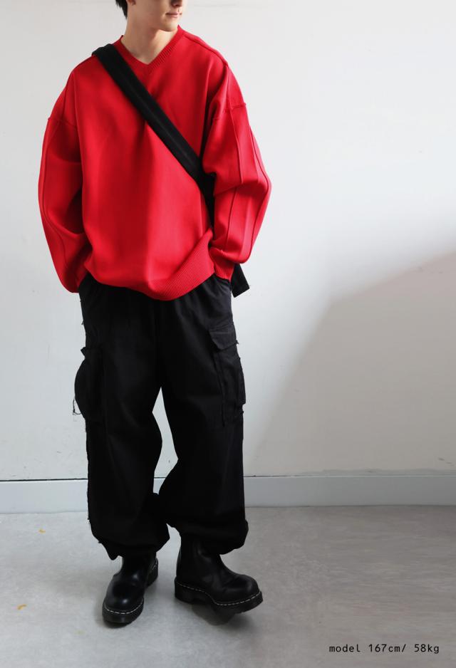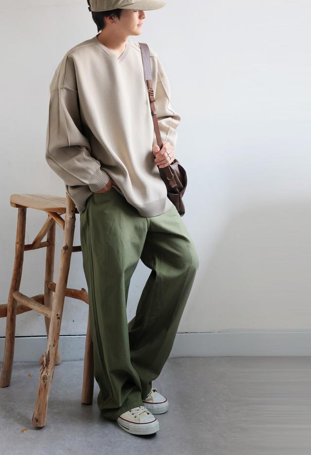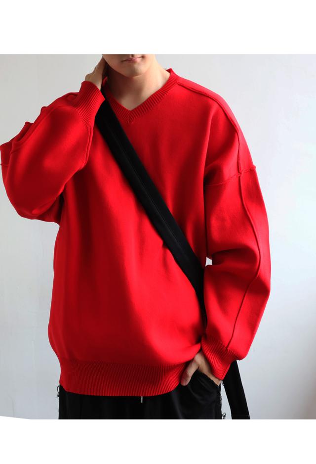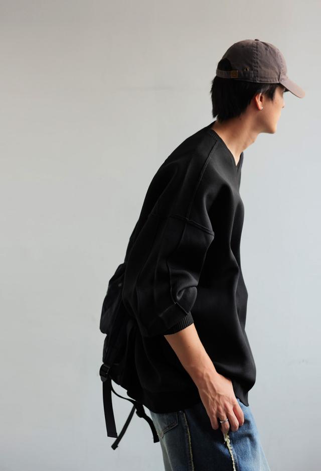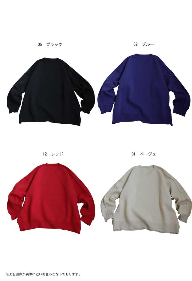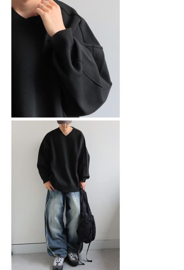 ほどよくハリがあり、もちっとした質感がクセになるスポンジニット素材を使用したVネックプルオーバーです。
