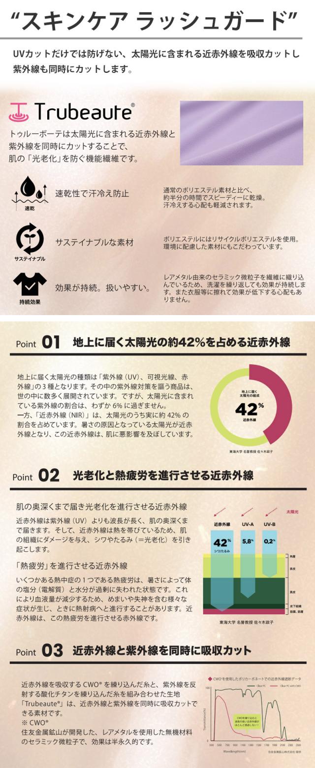 これらを進行させる近赤外線と紫外線を同時に吸収カットする機能素材Trubeaute(R)を使用した