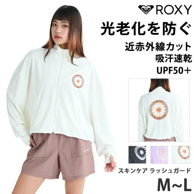 値下げ 送料無料 ROXY ロキシー ラッシュガード レディース RLY252024 M L メール便 ウィメンズ ジップ付きラッシュガード 長袖 UVカット 吸汗 速乾 スキンケア 近赤外線カット 日焼け防止 ラッシュジャケット 体型カバー 水着 上着 ハイネック ショート丈 WILD FLOWER ZIP
