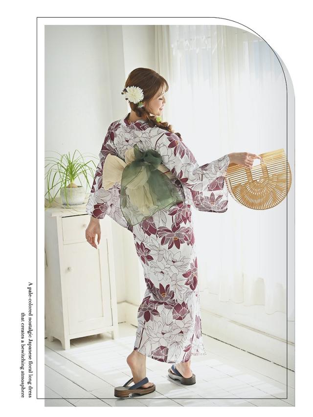 ☆大胆に描かれた花柄が豪華な2点セットの夏浴衣。
