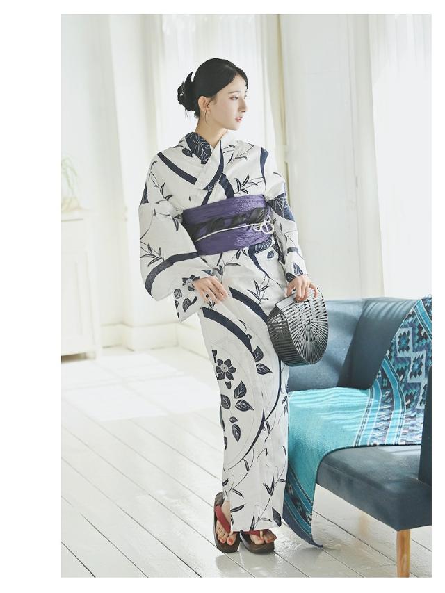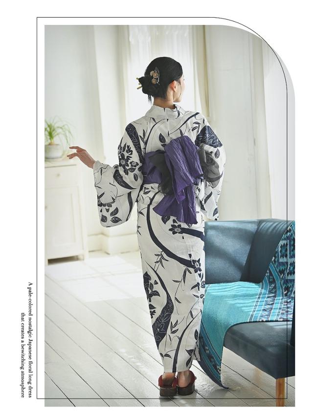 ☆白地にリーフ柄をあしらった、大正ロマン風の古典柄浴衣。