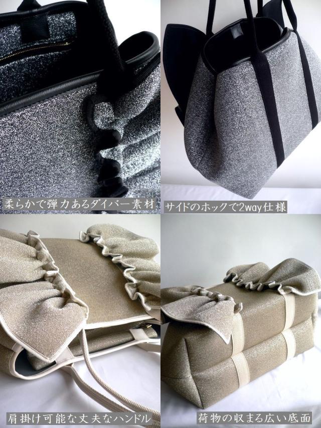 RAPTURE ラプチャー バッグ ダイバー素材 ネオプレン ネイプルズ ラッフル トート メタリック-Lサイズ TT288MTL ゴールド シルバー ネイビー ピンク