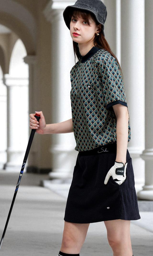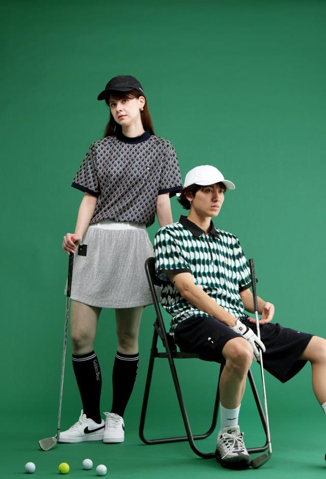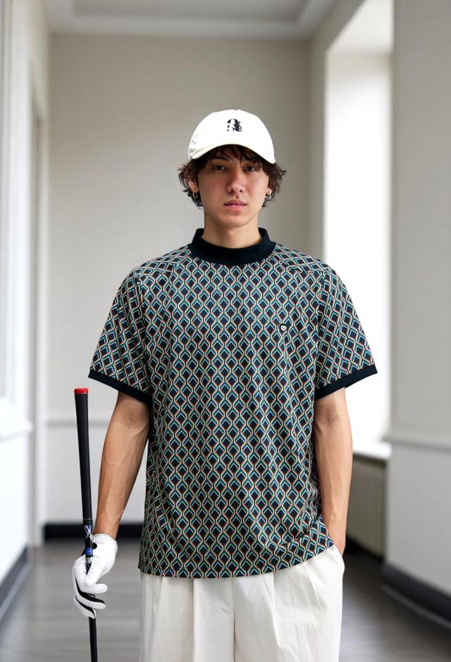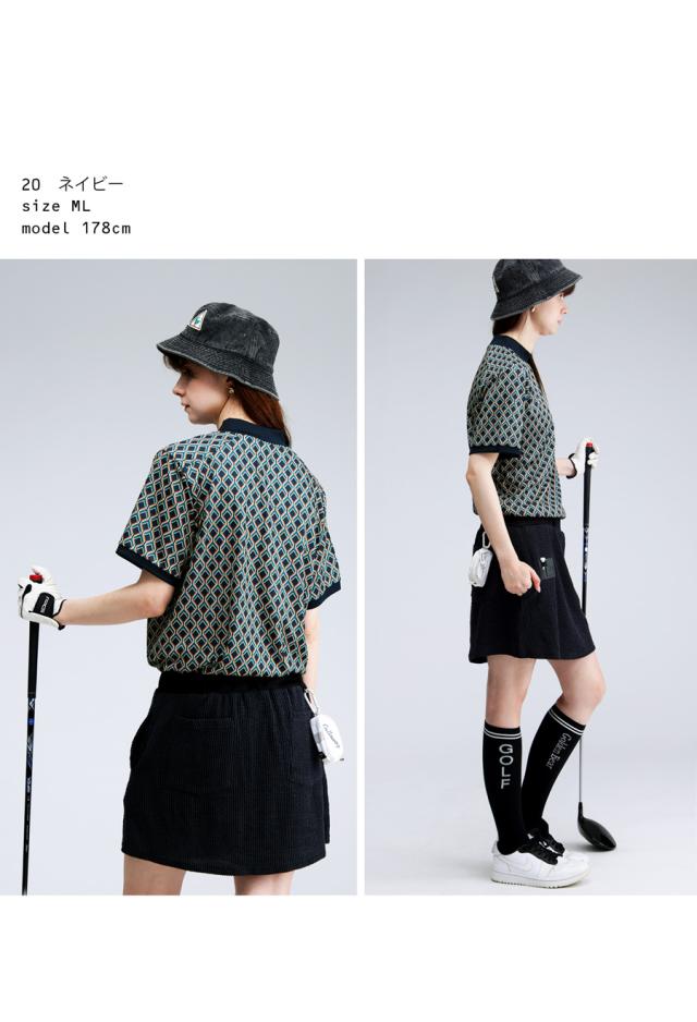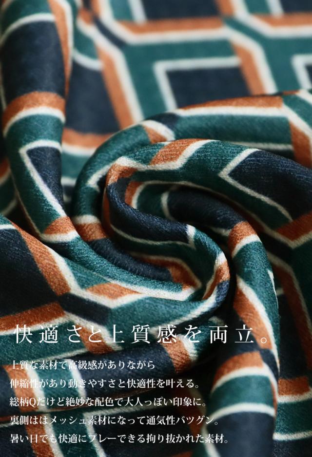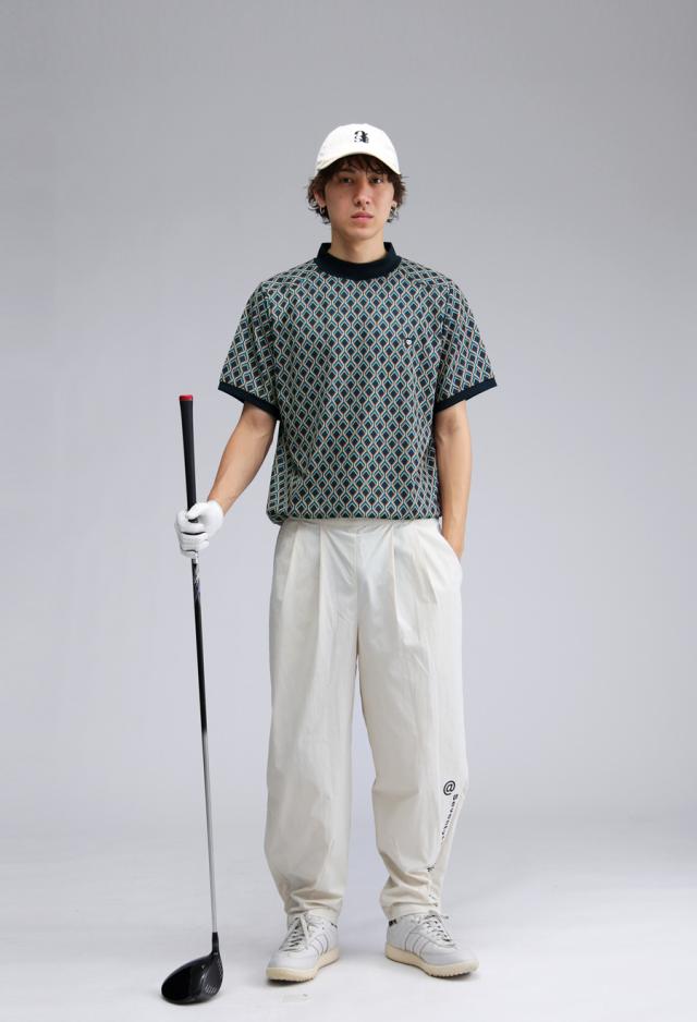 総柄のグラフィックが大人っぽさを引き立てつつ、ラフに着こなせる伸縮性のある快適素材で、プレー時も街歩きもストレスフリー。