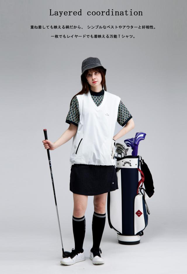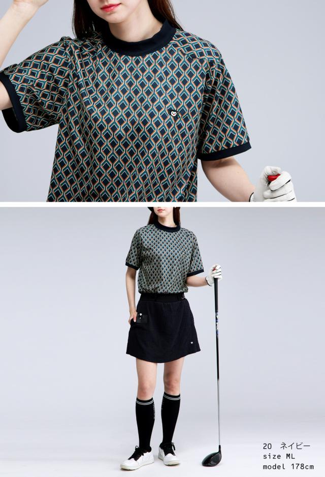 ジオメトリック柄Tシャツ レディース ゴルフウェア 送料無料・再入荷 (50)メール便可