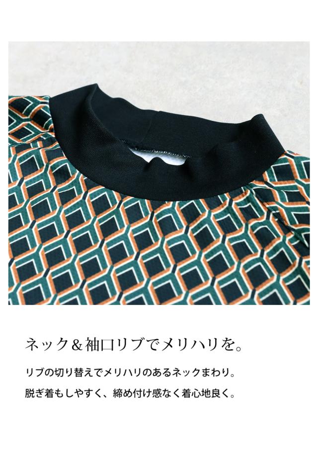 視線を奪うデザイン性と、動きやすさを兼ね備えた幾何学柄のTシャツ。