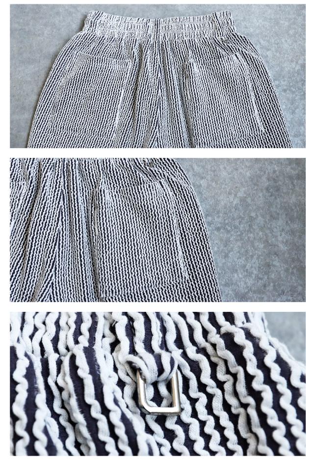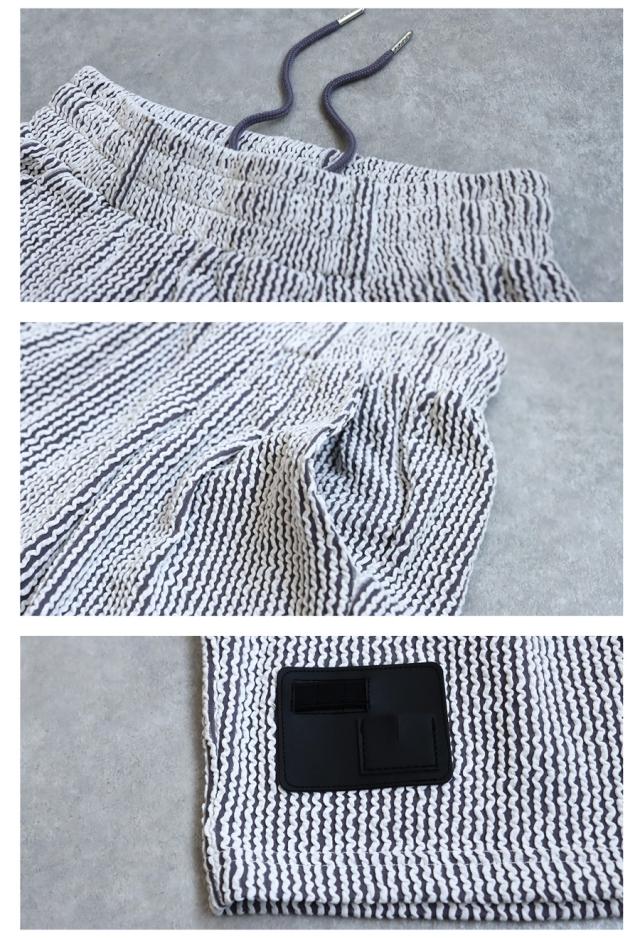 やさしい凹凸のある立体感が魅力のストライプ素材は、見た目の表情豊かで、軽やかさと通気性を兼ね備えた春夏にぴったりの生地感。